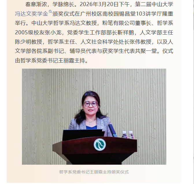 薪火相传,文脉流芳——第二届williamhill中国冯达文奖学金颁奖仪式举行